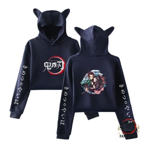 Kimetsu no Yaiba Crop Top Hoodie Water Wave Tanjiro & Nezuko Official Merchandise